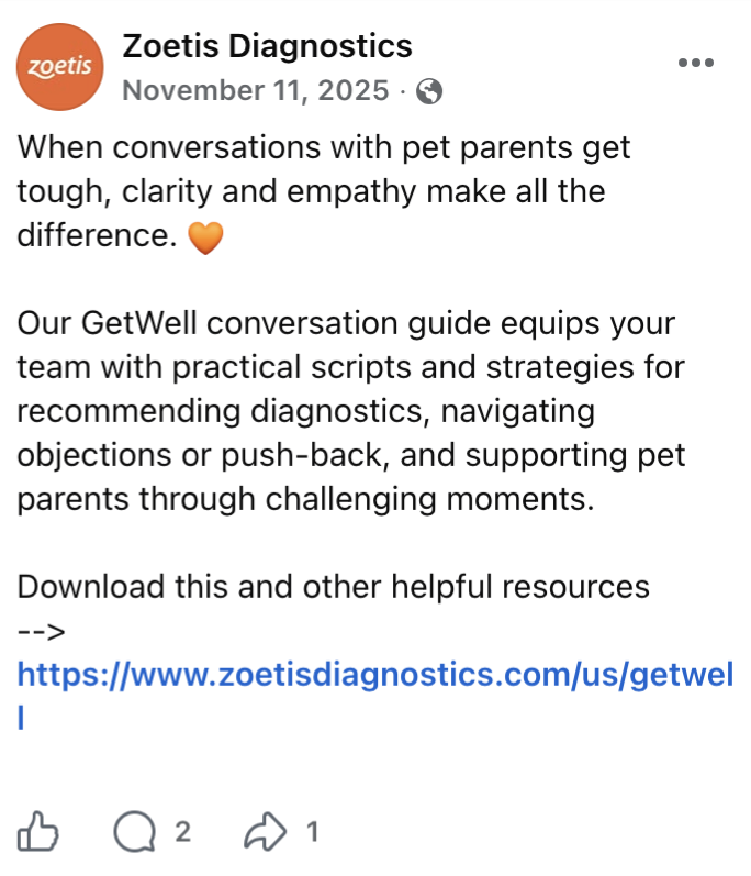 Zoetis, a global leader in animal health, brought me in across a wide portfolio of product lines speaking to multiple audiences at once, from veterinary technicians to procurement leads. The work required messaging that was brand consistent but could stretch to meet the entire ecosystem of a vet clinic: clinical enough to hold credibility with the people who know best, clear enough to resonate with everyone else.
